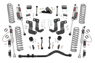Take Your Jeep JL 4xe to the Next Level: When it comes to your four-door Jeep JL 4xe, you need a lift that delivers unmatched off-road capability without sacrificing on-road comfort. Rough Country's 3.5-inch Lift Kit gives you the perfect blend of legendary trail performance, smooth highway handling, and rugged style.Boosted Ground Clearance for Any Terrain: Conquer rocky trails, deep ruts, and uneven ground with ease. This lift kit provides the extra clearance your Jeep Wrangler Unlimited needs to clear obstacles, keeping you in control no matter where adventure takes you.Perfectly Leveled Stance: Say goodbye to the factory nose-down rake. Our kit raises the front to match the rear, giving your Jeep a balanced, aggressive profile and a more stable ride both on and off the pavement.Tuned Coil Springs for Superior Ride Quality: Engineered with OEM-based spring rates, these coil springs deliver factory-like comfort with enhanced handling. The linear coil rate design further improves stability and load support, keeping your Jeep planted even when the terrain gets wild.Room for Larger Tires: Ready for an aggressive look and more grip? This kit accommodates up to 35-inch tires, giving your Jeep the muscular stance and performance you've been dreaming about.Heavy-Duty Forged Track Bar: Built from solid forged steel, the included track bar offers unsurpassed strength and durability. With a massive 1.25-inch outside diameter and OEM-style rubber bushings, it keeps your axles perfectly centered and your suspension dialed in for peak performance.Control Arm Drop Brackets for Optimal Geometry: Maintain factory arm angles for improved suspension travel and ride comfort, even after lifting your Jeep.Fast, Hassle-Free Installation: Spend less time in the garage and more time on the trails with a kit designed for straightforward installation.Customizable Shock Options: Tailor your ride with your choice of nitrogen-charged N3 shocks, performance-driven M1 shocks, or premium M1 Reservoir shocks, so you can match your suspension to your driving style.With Rough Country's 3.5-inch Lift Kit, you're not just modifying your Jeep, you're building it for adventure, durability, and performance that lasts.