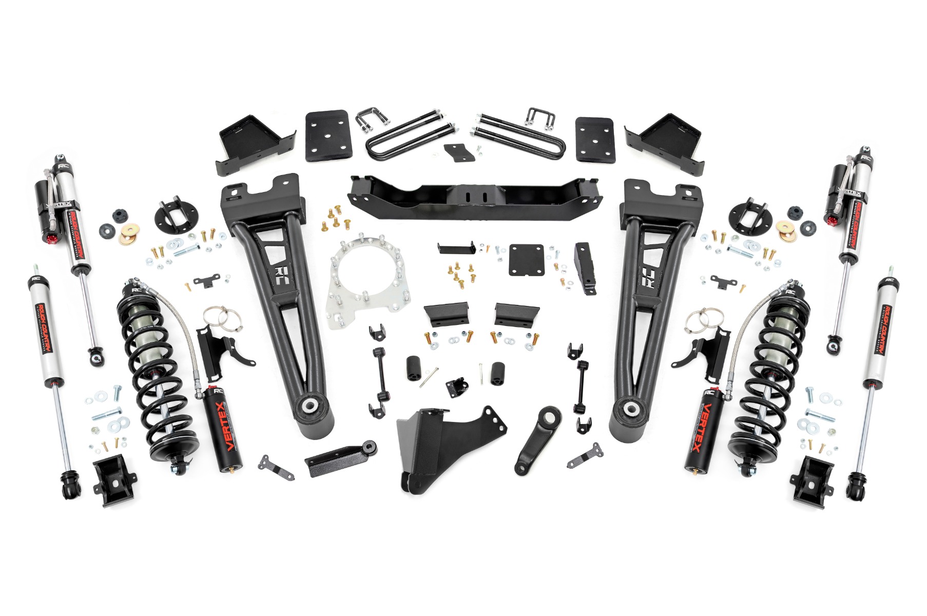 Superior Ride Quality.Take your fourth-generation Ford Super Duty to new heights with Rough Country's 6-inch Radius Arm Coilover Conversion Suspension Lift! This all-inclusive kit comes with everything you need for a total transformation of your truck. Run up to 37in tires while preserving the smooth, factory ride quality with this impressive upgrade.\