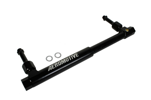 Billet, double adjustable, carburetor fuel logs for superior fitment. The advantage of a company that understands engineering, design, and manufacturing, is peace of mind. When you buy a fuel log from Aeromotive, you can be assured they will fit and deliver as promised. Threaded with 9/16? ? 24 ORB (o-ring boss) for proper sealing on carburetors like the Holley Ultra-HP and those with similar float bowls. Carburetor inlets swivel + or ? 20 degrees in all directions for optimum clearance from valve cover and intake runners. Telescoping center line is 7.700? to 13.450? adapts to standard and high capacity float bowls. ORB-10 inlet and outlet ports can be adapted from AN-12 to AN-06 with available Aeromotive ORB port fittings. Two 1/8? NPT ports for gauges and/or pressure transducers. 1.056/.806? ID bore for high flow capacity. Type II bright-dip black anodized finish for durability and great looks.