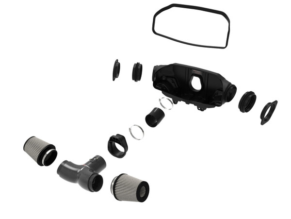 Dual 4” Flange 360-degree radial flow air filters feature our oil-free Pro DRY S media with three layers of synthetic media for maximum convenience. Their progressive layering provides great filtration efficiency and dust holding capacity, while not requiring the use of oils. This media is best suited for street use. Their inverted tops make for more filter surface area, resulting in longer service intervals. Lightweight twill weave carbon fiber tube directs the filtered air from the dual air filters to the engine. It is computer designed and dyno tested to increase air flow while reducing weight and enhancing the visual appearance of the engine bay. The tube is manufactured out of 100% carbon fiber material (No fiberglass). The dual air filters are surrounded by an open-element XLPE (cross-linked polyethylene) polymer housing that minimizes warm engine air for maximum performance. It is precisely designed and manufactured to fit perfectly into the factory mounting location. The housing connects to the factory air inlets on each side of the vehicle to capture the coolest air available. Silicone bellow couplings are used for engine movement and easy installation. The seal trim installed on the housing edge seals to the plastic trunk cover to protect the air filters from unwanted warm engine air. This set up allows for more aggressive air intake noise while not sacrificing any performance. Premium stainless steel clamps and flexible silicone couplings are used for strength and durability while also providing the most secure installation available.