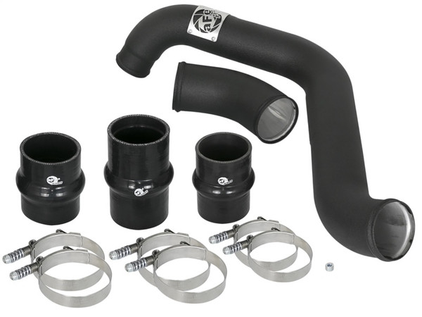 This BladeRunner Charge Pipe kit delivers 38% more flow and is more robust to handle higher horsepower and boost than the factory Charge Pipe on the 2017-18 GM L5P diesel. TIG-welded and designed from aircraft-grade, mandrel bent aluminum tubing, the BladeRunner I/C tube features factory mounting locations, quality hardware and 5-ply silicone couplings for a secure, hassle free installation. Flow and Performance: This hot side tube is constructed of 3" mandrel bent, powder coated aluminum tubing for maximum flow and performance. The smooth transition bends decrease turbulence and minimize pressure loss, increasing horsepower, torque and lowering EGT's. Featuring one (1) 1/8" NPT port for connecting a pressure sensor or water methanol injection. Perfect Fit: Installs on the hot side to transfer hot air smoothly to the intercooler accelerating heat transfer to help make more power. Utilizes the factory mounting locations to provide stability for a hassle-free installation. Quality Hardware and Couplings Included: Includes high quality stainless steel spring-loaded T-Bolt clamps and heavy-duty 5-ply polyester reinforced silicone couplings pressure tested to 200 psi for long lasting strength and durability. Custom Appearance: Finished in wrinkle-black powder coating and badged with a unique aluminum laser-cut aFe Power logo welded on for a custom look.
