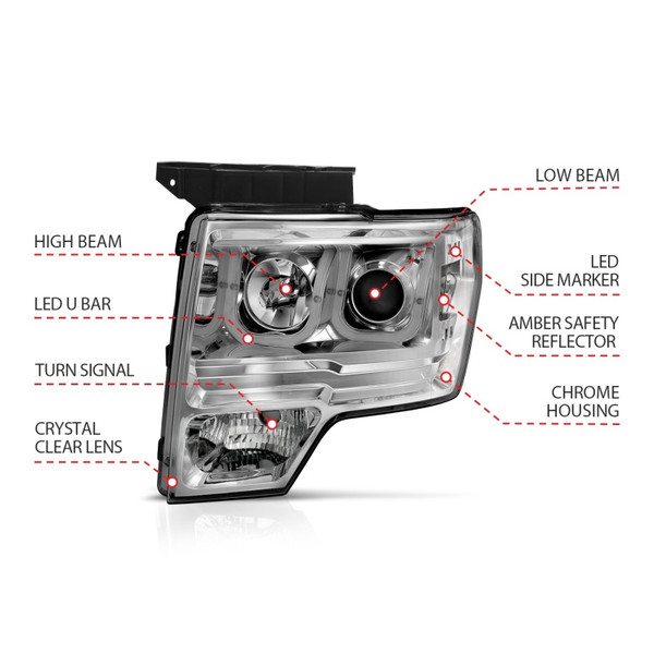 ANZO 2009-2014 Ford F-150 Projector Headlights w/ U-Bar Chrome - 111264