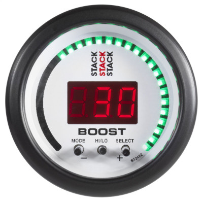 Autometer Stack 52mm -30INHG to +30 PSI (Incl T-Fitting) Mechanical Boost Pressure Gauge - White - ST3162