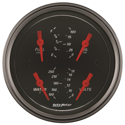 Quick view AutoMeter Autometer Designer Black 3-3/8in Quad Gauge - Fuel Level/Oil Pressure/Water Temperature/Voltmeter - 1412 Compare $276.99 Sometimes Space Is Limited. The Autometer Quad Gauge Provides A Solution To Limited Dashboard Space While Providing A Clean Look. Individual Autometer Air Core Meter Movements For Each Function... Add to Cart Add to Cart