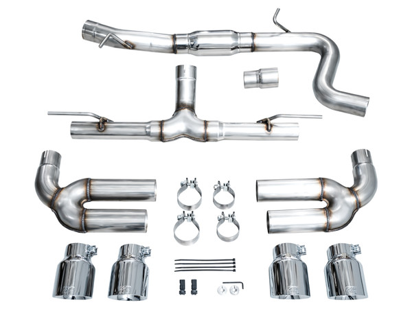 The Track Edition features a 3” inlet complete with an adapter to accommodate the factory downpipe perfectly while leaving an open 3” connection. Featuring minimal filter with one bullet resonator in the center, the Track Edition provides a full-bodied soundtrack at all times.. This configuration provides the best ratio of interior refinement and exterior rumble on the market. No valves needed. Switch driving modes and the exhaust will render the same result as a vavled exhaust. It's the do-it-all exhaust for every day drivers. Comes complete with quad 4.5" slash-cut, double-walled tips in chrome silver. The AWE Track Edition for the 8Y S3 is made in the USA and backed by AWE’s Fitment Guarantee, 50 state emissions compliance, No Check Engine Light Guarantee, and the AWE Lifetime Warranty.