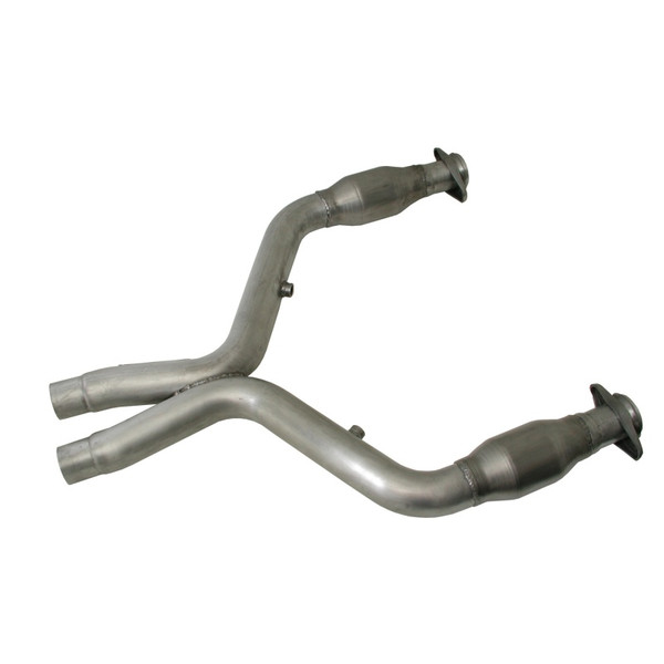 BBK Performance short mid X pipes with catalytic converters are specifically designed to be used with BBK full Length exhaust headers to complete the exhaust installation to your cars cat back exhaust system. This BBK mid pipe is designed and built with 2-3/4 in. CNC mandrel bent tubing for maximum exhaust flow and high flow catalytic converters. All BBK mid pipes feature ball and socket style connectors for simple installation and adjustment for good ground clearance. The BBK merged X center section crossover is designed to maximize the exhaust flow potential of your Mustangs high performance engine to get the maximum horsepower and torque available to the ground. Every BBK mid X pipe offers performance, quality and value that guarantees years of top performance for your Mustang. Designed to Fit BBK Long Tubes part # 1641 and 16410