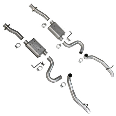 These new BBK Varitune axle back exhaust systems feature BBK Varitune mufflers that have a patented adjustable power valve inside that allows full adjustment of the exhaust flow through the mufflers chambers for a great sound and added performance. This adjustment is made at the rear of the muffler with a wrench by either moving the valve in or out. Once you are happy with the level of sound, it is locked in place with the Varitune locking nut. All of the Varitune power valves are made with stainless steel for lasting durability and smooth operation. These patented BBK Varitune exhaust systems allow you to personalize the power and sound levels of your car 8-10 decibels and 10-15 horsepower. All kits are available in aluminized or stainless steel and are offered as direct bolt on replacements for the restrictive factory exhaust. Every Varitune exhaust kit includes BBK Varitune laser etched logo 4 in. brushed stainless steel tips for impressive looks.