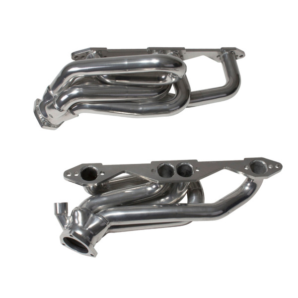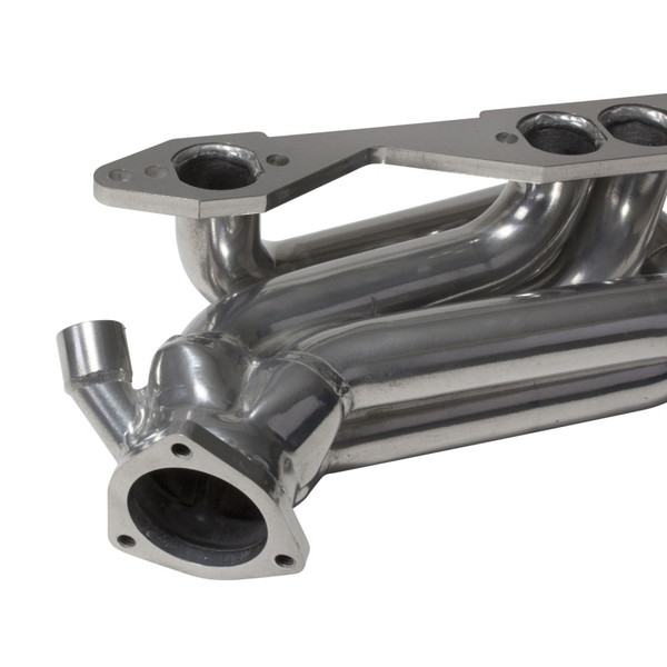 These BBK Performance shorty tuned Length exhaust Headers are designed and constructed as direct fit replacements for all 96-99 GM Truck, SUV 5.0L and 5.7L applications. Each header is manufactured with 1-5/8 in. CNC mandrel bent tubing that offers unrestricted exhaust flow for increased horsepower and torque over factory OEM manifolds. BBK tuned Length headers offer improved scavenging waves for better combustion, which leads to improved performance and fuel economy over stock or equal Length headers. As with all BBK Performance exhaust headers they feature a 3/8 in. laser cut flange for additional strength and a guaranteed leak free fit. All headers are robotically and precision hand welded and then pressure tested to ensure years of reliability and performance in the real world. All BBK exhaust headers are available in a titanium ceramic or polished silver ceramic coated finish and include new exhaust header gaskets, header bolts and hardware to complete the installation.