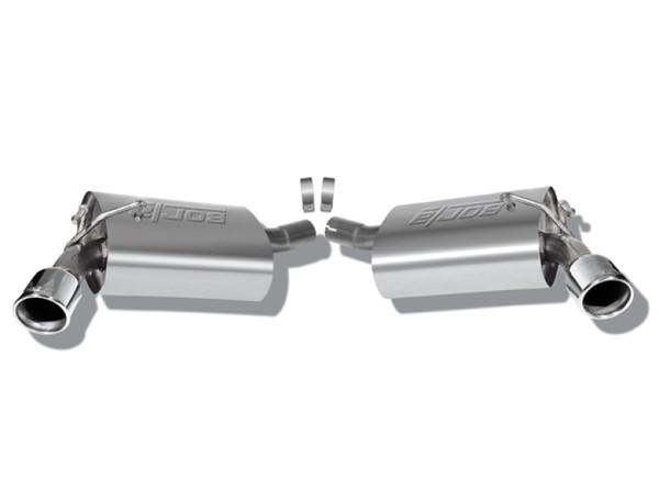 Does NOT fit 2013 RS w/quad-tips a.k.a. Dual-Mode Exhaust. Chevrolet pulled all the stops to ensure the re-launch of the legendary Camaro was worth the wait to agonized fans, and the world's most winning exhaust has responded in kind. Rather than simply work from concept vehicles and drawings, Borla(r) RD engineers headed down under to the GM Holden facility in Australia to work directly with the GM Camaro team. The result of this exciting collaboration is a series of Cat-Back(tm) and Axle-Back exhaust systems, providing the ultimate in tuned performance, sound, style and fitment. Borla(r)'s Camaro Cat-Back(tm) arsenal is led by an aggressive high-performance "S-Type" system (PN140280) that utilizes patented XR-1 technology from Borla(r) exhausts used in race-winning Corvettes and other GM champions. Drivers who prefer a more subdued sound will opt for (PN140281), a Touring version that combines a racing heart with a more stealth-like growl. Each of these Cat-Back(tm) options comes complete with an x-pipe for increased flow and richer sound, and is also available as an Axle-Back system S-Type (PN11775), and Touring (PN11774). On top of the power, sound and looks, drivers also enjoy significant weight savings with a Borla(r) exhaust, shedding as much as 43 lbs. over stock enough to make a difference at the pump and the track. Like all Borla(r) exhaust products, the Camaro systems feature durable high-quality T-304 austenitic stainless steel construction, patented power when you want it, fuel economy when you need it technology, mirror-polished T-304 stainless steel tips and a Million-Mile Warranty. This product is a direct result of Borla(r)'s 30-year legacy with race-winning Chevrolets from Indy to Daytona.