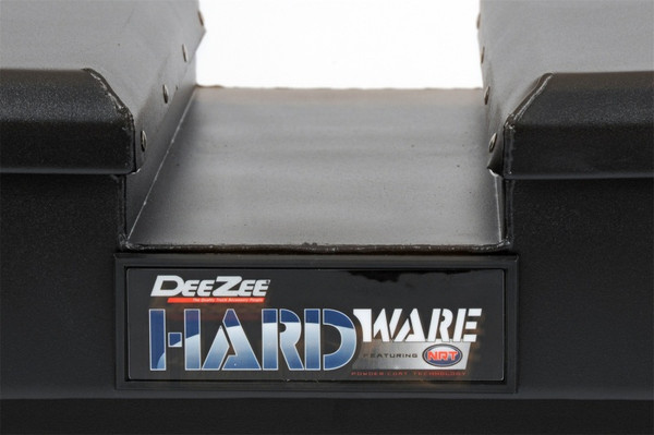 Dee Zee Tool Box - Hardware Series Double Lid (Gull Wing) Crossover. Constructed of durable 20-gauge steel. Protected by texture black NRT(TM) (No Rust Technology) rust inhibitor powder coat finish. Crown style lid with a full pan double-V stiffener for superior rigidity. Other features: lockable stainless steel paddle handles, dampened gas shocks, closed cell foam gasket, and self-adjusting strikers. Removable plastic tool tray to help keep small items organized.