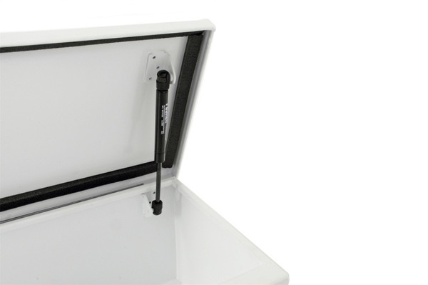 Dee Zee Tool Box - Hardware Side Mount Boxes. Constructed of durable 20-gauge steel. Protected by wrinkle white NRT(TM) (No Rust Technology) rust inhibitor powder coat finish. Crown style lid with a full pan double-V stiffener for superior rigidity. Other features: lockable stainless steel paddle handles, dampened gas shocks, closed cell foam gasket, and self-adjusting strikers. Installation Instructions