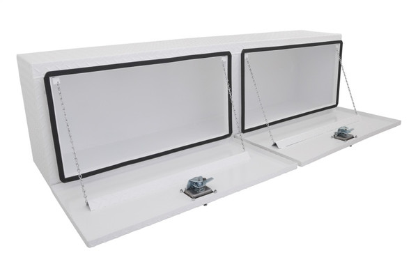 Dee Zee Tool Box - Topsider provides handy storage on top of your trucks bed rail. Constructed of durable Brite-Tread aluminum. Texture White powder coat, provides a matte black finish while it protects and prevents oxidation. Drop-down doors provide quick access to your tools. Locking stainless steel T-handle latches. C-Channel design resists leaks, incorporating a one-piece neoprene rubber bulb seal.