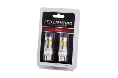 Features Direct replacement for factory incandescent 1157-size front turn signal bulb. Adds cool white running light along with amber turn signal. High-power Samsung LEDs arranged around the bulb. No yellow appearance when switched off. Fully aluminum construction. Non-polar and CK compatible. Plug and play simple installation. Overview Upgrade. Add dual-color functionality and a modern appearance to your front turn signals with the 1157 HP24 turn signal bulb. Populated with sixteen amber chips and eight white chips this bulb lights up white when your headlights are turned on and flashes amber when the turn signals are activated. Housed in an aluminum casing for maximum heatsinking properties the HP24 will last for years to come. Best of all installation only takes minutes - simply take out your factory bulb and the HP24 will fit snugly in the socket. The HP24 bulb is only suitable for vehicles that have a clear front turn signal reflector lens. Brightness. At 410 lumens the HP24 will provide about double the total light output compared to your factory bulb. All Diode Dynamics LED lighting is rated with accurate measured lumen figures not calculations or guesses. We test the true output in-house and provide you the real numbers to compare. Reliability. Unlike other bulbs on the market this bulb is built with constant-current circuitry along with transient suppression. That means this bulb will last for years not months with no flickering or failure. And like every Diode Dynamics product it's backed by an industry-leading three-year replacement warranty.