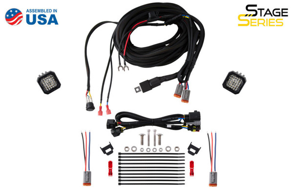 Features Direct fitment compatible with Toyota Tacoma 2016-2023. Allows you to mount SSC1 or SSC2 LED pods underneath the rear bumper. Plug-and-play wiring harness, with OEM connectors and toggle switch override. Provides high-power reverse light, and red accent light. Designed and assembled in USA. Overview. There's plenty of ways to add light behind your vehicle, but the new Stage Series Reverse Light Kit stands out with innovations in both function and ease of use. This kit includes an integrated red running light, and plug-and-play wiring harness, for trouble-free installation! Thanks to Stage Series TIR optic technology, this kit provides a huge amount of extra reverse light. The included switch allows you to toggle it on any time, or activate automatically with your reverse lights, for a truly integrated solution. Plug and Play. Thanks to custom-molded OEM connectors, this kit is completely plug-and-play. The included adapter harness plugs right into your factory tail lights for easy installation and operation. No cutting, drilling, or additional wiring needed! The kit operates as an additional red accent light, with your tail lights, and then automatically switches to a high-power backup light when your vehicle is in reverse. The included toggle switch allows you to override the vehicle signals and turn on the main beam anytime. Backlight Functionality. The Stage Series LED pods included with this kit feature a distinctive backlight in a vibrant red color which functions as an additional accent light while driving! The backlight fully illuminates the TIR optic, providing a more unique and modern look than the small indicator LEDs found in other products.