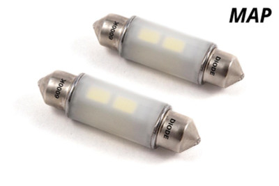 Features Direct replacement for factory 41mm festoon bulb Increased output with LED appearance Plug and play simple installation Overview Design. The 41mm HP6 LED bulb is a direct replacement for any 41mm-size bulb commonly found in door lights dome lights and trunk lights in many vehicles. Populated with eight high-power LEDs arranged in an omnidirectional pattern the HP6 upgrades the factory yellowish incandescent bulb to a more modern LED appearance while providing far more light output than the factory bulb. Thanks to the frosted cover the HP6 provides even light distribution and a clean factory-style appearance. With its durable metal terminals it will fit snugly in the socket and its light weight means it won't vibrate loose over time. Reliability. Unlike other bulbs on the market this bulb is built with constant-current circuitry along with transient suppression. That means this bulb will last for years not months with no flickering or failure. And like every Diode Dynamics product it's backed by an industry-leading three-year replacement warranty. Brightness. With 140 lumens of true measured output the HP6 LED will provide far more light output than your original 41mm-sized bulb. All Diode Dynamics LED lighting is rated with accurate measured lumen figures not calculations or guesses. We test the true output in-house and provide you the real numbers to compare. Colors. In addition to vibrant colors of blue and red the HP6 is available in a cool white 6000K option as well. Whether you want a modern cool white appearance or a color to show off your unique style we have the color to fit your need!