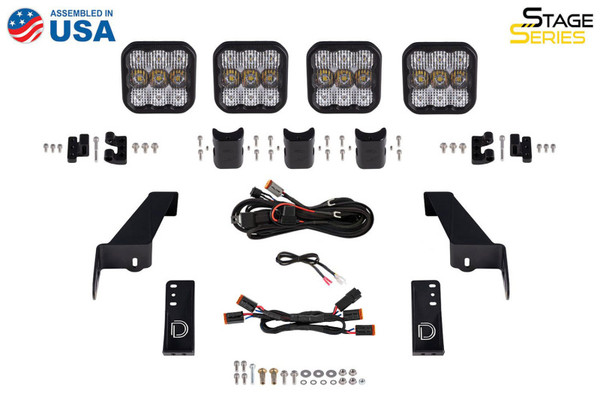 Features Bolt-on fitment compatible with Jeep JL Wrangler 2018-2021 Ultra-high intensity, with custom-engineered TIR optics Selectable backlight color, with eight color options Torture-tested, heavy-duty construction Control through factory aux switch bank using the included harness Assembled in USA Overview Perfect Fitment. The Grille CrossLink Lightbar Kit compatible with Jeep JL Wrangler 2018-2021 from Diode Dynamics allows you to mount four linked SS5 LED pods on the factory grille. These application-specific brackets were CAD-designed to bolt into place using factory mounting points on the bumper. Designed for Performance. Featuring the highest output intensity of any 5-inch LED pod on the market, these lamps have been designed for maximum functionality, with patented technology and custom-engineered TIR optics, all in a durable package. Selectable Backlight. The Stage Series 5inch LED Pods included in the White kit feature a selectable backlight with eight different color options, perfect for an extra accent. Selecting your backlight color is easy - simply alternate the power on and off. There's no complicated programming with a controller! The SS5's backlight fully illuminates the TIR optic, providing unique accent lighting that you won't find on other LED pods. NOTE: The Yellow kit is only available with an Amber backlight color. CrossLink. Our patent-pending CrossLink technology allows you to link up to eight SS5 pods together to create your own lightbar. The single-piece CNC aluminum link provides extreme rigidity, but is fully adjustable, for both straight and curved configurations. NOTE: The existing mounting points must be drilled out larger in order to secure the bracket.