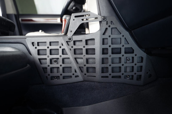 Our Molle Panels & Digital Device Bridge for the GX 460 provides efficient ways to keep your everyday items and handheld devices close and accessible. The driver & passenger side panels provide an excellent way to mount molle pouches, small tools, a holster, pocket light, and many other molle accessories. The bridge fits along the control panel, and does not interfere with any of your controls or cupholders. It?s fitted with PEM nuts (M5 x 0.8) which are compatible with RAM diamond base digital device mounts, as well as other common brands. This bridge can mount your smartphone, GPS, tablet, radio, or other handheld devices in an easily accessible location. If you choose not to use the bridge, it can be easily removed while keeping the side molle panels in place.