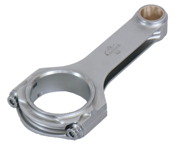 Eagle's 4th Generation H-Beam rods are forged from ASME certified 4340 steel in a two-piece forging and feature a fully machined and shot-peened surface. Eagle's 4th Generation design features thicker beam webbing for increased power handling capabilities, Increased beam and cap contact area and shoulder area to inprove bore stability under high load, and new small end profile to reduce reciprocating weight. Sizing is held to exact tolerances. Sold as a weight-matched set. Equipped with ARP 2000 bolts. Recommended for competition use.