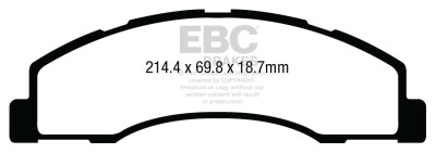 If you simply need a quality OEM replacement pad, look no further than Ultimax. Made in the UK Bristol EBC Brakes manufacturing plant Ultimax is a beautifully engineered brake compound that lasts well, produces minimal dust and is the perfect choice for the urban or daily driver. Why spend more if all you need is a quality replacement pad.The Ultimax pad does include a small percentage of steel fibre to achieve its price point, far less content than our competition where steel fibre content can attain 50 volume and this optimum fibre blend is what makes Ultimax both popular and unique amongst brake blends .Once bedded in Ultimax will inspire confidence in any car light truck or SUV no matter how you drive.Its universal heat range abilities and low rotor wear are additional benefits of the Ultimax pad range which is the EBC worldwide number one selling brake with numbers of sets sold running into tens of millions over the recent years. Unlike many of our performance grades Ultimax has remain unchanged as a pad compound for ten years now, a true testament to its success and customer acceptance. Why change a winning formula.Black coded in the EBC range EBC Ultimax is a fully ECE R 90 approved brake pad range and at its lower price point, less than HALF the price of original parts yet TOTALLY EQUIVALENT by nature of its R 90 brake safety approval, Ultimax offers great value for money and first class driving safety.When replacing brakes of any kind please remember how important brake safety is to your own well being and either have a professional mechanic install your new brakes or if you are a qualified mechanic use the EBC installation DVD as a guide in support of your vehicle owner's manual. These installation guide DVD tasters can be viewed here and the full DVD purchased from online vendors.