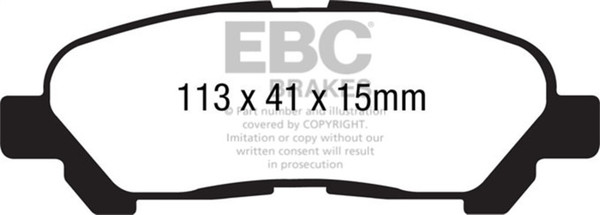 If you simply need a quality OEM replacement pad, look no further than Ultimax. Made in the UK Bristol EBC Brakes manufacturing plant Ultimax is a beautifully engineered brake compound that lasts well, produces minimal dust and is the perfect choice for the urban or daily driver. Why spend more if all you need is a quality replacement pad.The Ultimax pad does include a small percentage of steel fibre to achieve its price point, far less content than our competition where steel fibre content can attain 50 volume and this optimum fibre blend is what makes Ultimax both popular and unique amongst brake blends .Once bedded in Ultimax will inspire confidence in any car light truck or SUV no matter how you drive.Its universal heat range abilities and low rotor wear are additional benefits of the Ultimax pad range which is the EBC worldwide number one selling brake with numbers of sets sold running into tens of millions over the recent years. Unlike many of our performance grades Ultimax has remain unchanged as a pad compound for ten years now, a true testament to its success and customer acceptance. Why change a winning formula.Black coded in the EBC range EBC Ultimax is a fully ECE R 90 approved brake pad range and at its lower price point, less than HALF the price of original parts yet TOTALLY EQUIVALENT by nature of its R 90 brake safety approval, Ultimax offers great value for money and first class driving safety.When replacing brakes of any kind please remember how important brake safety is to your own well being and either have a professional mechanic install your new brakes or if you are a qualified mechanic use the EBC installation DVD as a guide in support of your vehicle owner's manual. These installation guide DVD tasters can be viewed here and the full DVD purchased from online vendors.