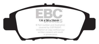 EBC Yellowstuff is an aramid fibre based brake compound with high brake effect form cold and is possibly one of the first ever compounds that can be used for STREET AND TRACK DRIVING. These pads do not require warm up but do get even stronger under the heat of hard driving. These are not a low dust pad and if your desire is for a low dust premium street use pad, you should consider EBC Redstuff.When considering full race use, Yellowstuff has been a strong favourite, having been used for two years in the Swedish Camaro Cup and at numerous other race events where a stock caliper system is fitted.It is also the choice of 90-percent of the Mazda MX5 Miata competitors in the UK race series and has an unblemished record as rotor friendly track pad for vehicles up to 2000 lbs weight or 200 BHP.In the USA the SCCA and NASA drivershave been testing Yellowstuff with feedback and good reports POURING in from a 543 test driver major market proving event with these groups. Read that figure again 543 test drivers.There is no guesswork here.