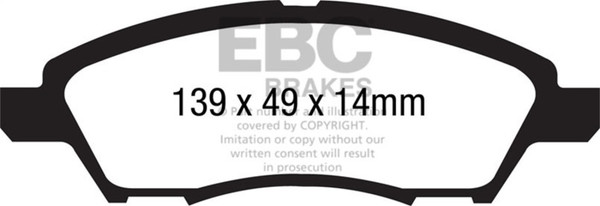 If you simply need a quality OEM replacement pad, look no further than Ultimax. Made in the UK Bristol EBC Brakes manufacturing plant Ultimax is a beautifully engineered brake compound that lasts well, produces minimal dust and is the perfect choice for the urban or daily driver. Why spend more if all you need is a quality replacement pad.The Ultimax pad does include a small percentage of steel fibre to achieve its price point, far less content than our competition where steel fibre content can attain 50 volume and this optimum fibre blend is what makes Ultimax both popular and unique amongst brake blends .Once bedded in Ultimax will inspire confidence in any car light truck or SUV no matter how you drive.Its universal heat range abilities and low rotor wear are additional benefits of the Ultimax pad range which is the EBC worldwide number one selling brake with numbers of sets sold running into tens of millions over the recent years. Unlike many of our performance grades Ultimax has remain unchanged as a pad compound for ten years now, a true testament to its success and customer acceptance. Why change a winning formula.Black coded in the EBC range EBC Ultimax is a fully ECE R 90 approved brake pad range and at its lower price point, less than HALF the price of original parts yet TOTALLY EQUIVALENT by nature of its R 90 brake safety approval, Ultimax offers great value for money and first class driving safety.When replacing brakes of any kind please remember how important brake safety is to your own well being and either have a professional mechanic install your new brakes or if you are a qualified mechanic use the EBC installation DVD as a guide in support of your vehicle owner's manual. These installation guide DVD tasters can be viewed here and the full DVD purchased from online vendors.