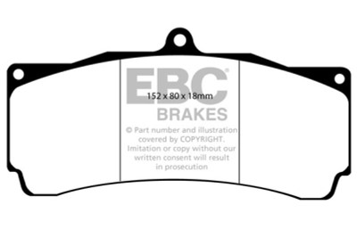 EBC Yellowstuff is an aramid fibre based brake compound with high brake effect form cold and is possibly one of the first ever compounds that can be used for STREET AND TRACK DRIVING. These pads do not require warm up but do get even stronger under the heat of hard driving. These are not a low dust pad and if your desire is for a low dust premium street use pad, you should consider EBC Redstuff.When considering full race use, Yellowstuff has been a strong favourite, having been used for two years in the Swedish Camaro Cup and at numerous other race events where a stock caliper system is fitted.It is also the choice of 90-percent of the Mazda MX5 Miata competitors in the UK race series and has an unblemished record as rotor friendly track pad for vehicles up to 2000 lbs weight or 200 BHP.In the USA the SCCA and NASA drivershave been testing Yellowstuff with feedback and good reports POURING in from a 543 test driver major market proving event with these groups. Read that figure again 543 test drivers.There is no guesswork here.