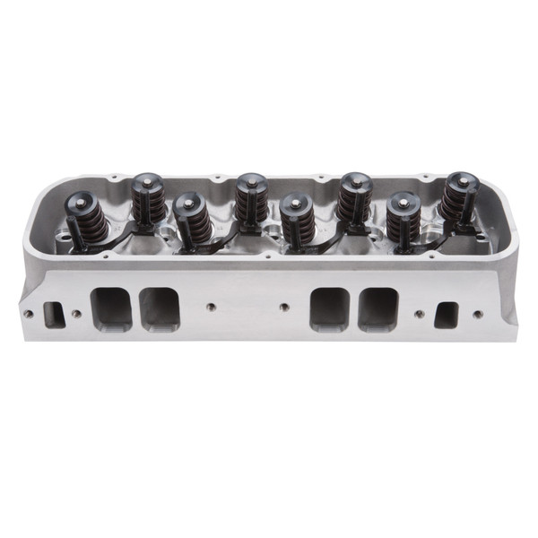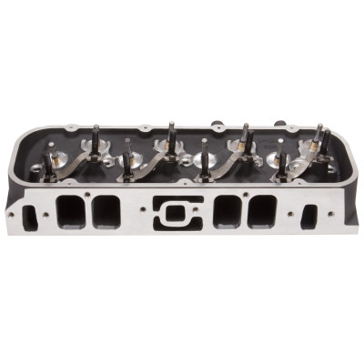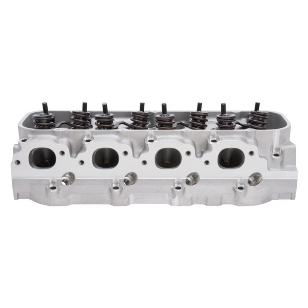 The Edelbrock part #77485 Big-Block Chevy Victor Jr. 24deg cylinder head features an extra thick deck and extra material in the spring pockets for a heavy-duty casting that can be used with high-lift cam and heavy spring combinations. Edelbrock equips the complete 774815 cylinder head with a spring packages to suit hydraulic roller cams. The 300cc rectangle ports produce impressive flow and great power on competition big-blocks up to 510 c.i.d. with 4.310" or larger bore. Exhaust port exits are raised .534" to greatly improve exhaust flow and power.
