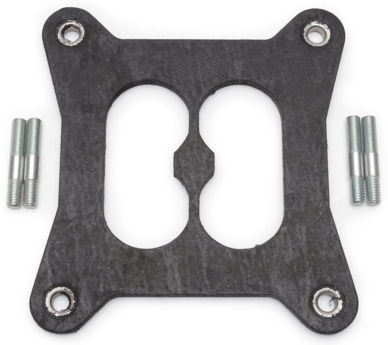 The Edelbrock Square-bore Heat Insulator Gasket #9266 is designed to prevent percolation on Edelbrock Performer Series Carburetors exposed to extreme under hood temperatures. This gasket features a divided center which will allow dual plane Performer and RPM manifolds to seal properly to the carburetor. Prior to installation, check air cleaner-to-hood clearance to ensure that additional height of heat insulator gasket will Not cause interference. Remove air cleaner and all attachments to the carburetor such as fuel line, throttle linkage, and vacuum lines. Be sure to note the position or tag each piece to facilitate re-installation. Remove the carburetor and set it aside, then remove the old base gasket and any additional plates, such as Edelbrock square-bore adapter #2732. Remove the short carb studs and install the longer studs. Install the #9266 heat insulator gasket directly against the manifold, then replace the carb and all other connections. Note that gasket #9266 is rigid enough to replace square-bore adapter plate #2732, if required.