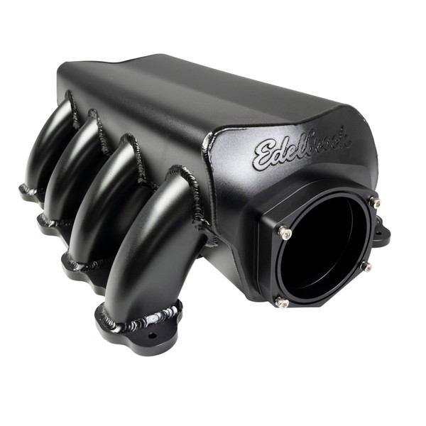 Edelbrock introduces the all-new XTS(TM) Manifold for the Ford 7.3-liter Godzilla Engine. This manifold features shorter-than-stock tapered runners tuned for high-RPM gains in engine swap applications. Finished in a highly attractive black powder-coat finish, the XTS is designed of lightweight, durable sheet metal. The flanges are of a billet construction for strength and consistent sealing with the heads. A horizontal throttle-body mount solves one of the most common swap fitment issues of intake air routing. All standard vacuum take-off ports are found on the rear of the manifold, and it comes complete with the mounting and vacuum take-off hardware. Team up the XTS manifold (P/N 7483) with a FAST 102mm throttle body (P/N 54106) and COMP Stage 3 camshaft (P/N 405-20-17) to create a 637 HP beast ready to swap into your favorite ride.
