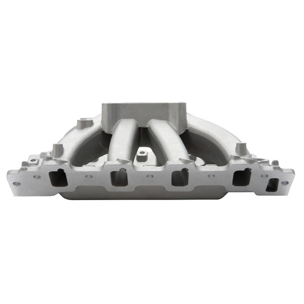 Edelbrock part #28945 Victor Jr. Holden EFI intake manifold is for use with competition 355+ c.i.d. Holden V8 engines that utilize the 1988-98 Holden VN cylinder heads. The Victor Jr. Holden is a single-plane design that is tuned for maximum air flow from 3500 to 7500 rpm. It features a taller design with long tapered runners for a broad operating rpm range. Will fit both stock 1988-1998 EFI style cylinder heads and the Edelbrock Holden VN RPM cylinder heads. It also features a 4150 flange for use with square-bore carburetors and throttle bodies. Includes extra material for porters to modify for use with 4500 series applications. The water outlet is machined for use with a small-block Chevy waterneck.