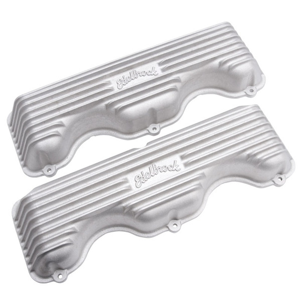 Edelbrock part #41409 Classic Series Valve Covers are designed for 348/409 W-Series Chevy applications and have a Satin finish. Edelbrock first made these aluminum valve covers in the late '50s and they're still a classic. Made of heavy-gauge sand-cast aluminum, Overall height is measured from base to top at the highest point. Edelbrock classic valve covers can be machined to accept breathers if desired.