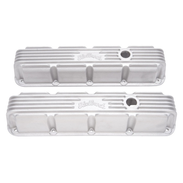 Edelbrock part #41779 Classic Series Valve Covers are designed for Chrysler Small-Block Magnum applications and have a Satin finish. Edelbrock first made these aluminum valve covers in the late '50s and they're still a classic. Made of heavy-gauge sand-cast aluminum, Overall height is measured from base to top at the highest point. Edelbrock classic valve covers can be machined to accept breathers if desired.