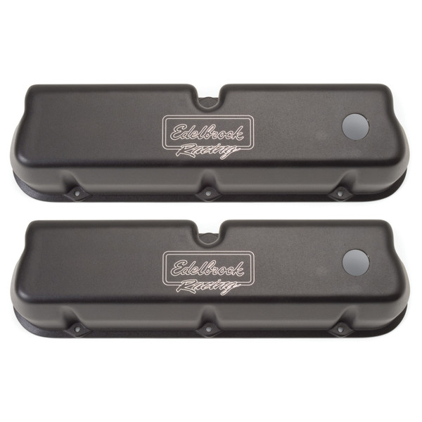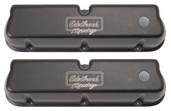 The Edelbrock #41263 Victor Series Valve Covers are designed for Ford 289/302/351W (except Boss) applications. Our Victor Series valve covers have a finely textured black powder coated finish for a pleasing and unique appearance. This is the same finish you'll find on our top-of-the-line Edelbrock/Musi 555 Crate Engine. These valve covers are manufactured from die-cast aluminum and machined with 1-1/4" breather hole. Overall height is measured from base to top at the highest point.