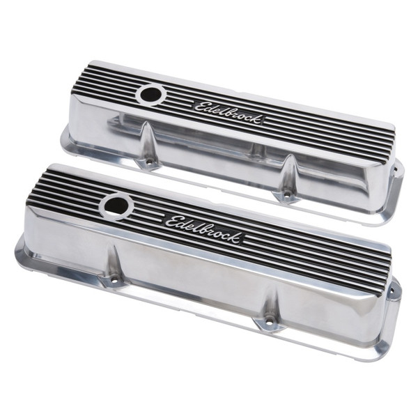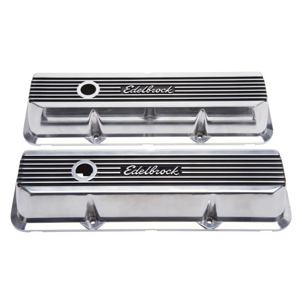 The Edelbrock #4277 Elite II Valve Covers are designed for Ford FE 1958-1976 applications. This new line of Elite II valve covers feature a design that is influenced by the original Elite Series originally released in 1985, but with a new modern take on this classic look. They're made from heavy-gauge, die-cast aluminum and are finished off with a show quality high luster polished finish. The raised fins are accented by a contrast gloss black finish between the fins for the definitive Elite Series look. Our tall profile valve covers are 2" taller than stock, and clear most roller rockers and valvetrain components. Our low profile valve covers clear all air-conditioning, alternator brackets and aluminum rockers. Overall height is measured from gasket flange to top at the highest point.