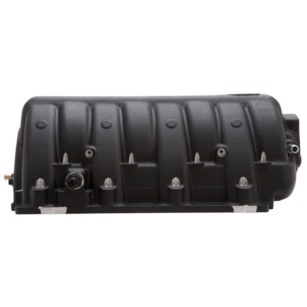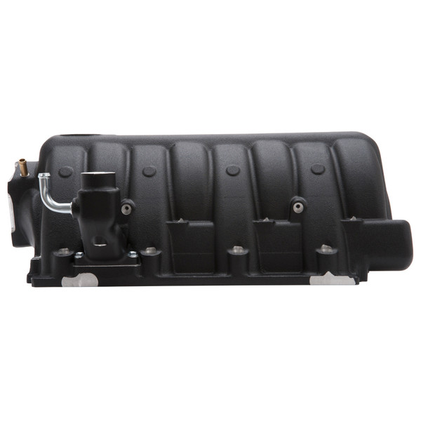 Edelbrock part #7179 Victor EFI intake manifold is designed for the "Eagle or WT" Chrysler 5.7L, 6.1L and 6.4L Gen III HEMI engines with fuel injection. The overall design is similar to the factory 6.1L SRT intake manifold, but with longer higher flowing runners and features relocated fuel injector bosses for improved flow and added nitrous bosses along the near vertical runners. The front inlet can accommodate the factory style 80mm throttle body or the 92mm Hellcat throttle body. In testing, the Victor EFI prototype made 25 hp over the stock intake manifold on a 6.4L engine. Manifold will clear most hoods without modifications. Required fuel rail kit #3647 available separately.