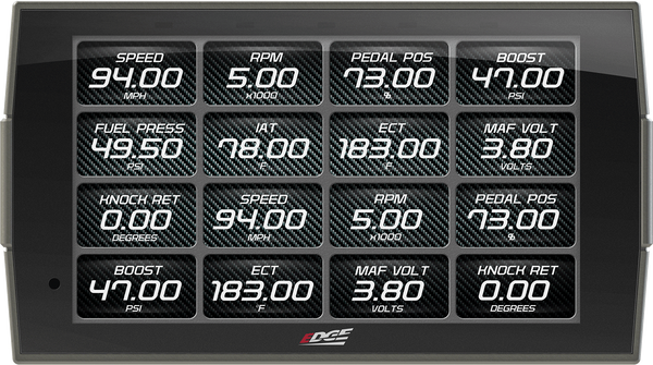 SAVES FACTORY SETTINGS AND RETURNS EASILY TO STOCK Introducing the next generation Evolution CTS3: all-new, full-Color Touch Screen CTS3. The CTS3 will continue to include all of the great features, benefits, and extended coverage from the CTS2 product line, all while adding a sleek, new exterior and cutting-edge screen. The best look in the industry delivered via a revamped, slim case design and a 5 full-color capacitive edge-to-edge display with true swipe screen technology. Not only is the display sharper, but the higher resolution screen delivers a tremendous pixel ratio and top-notch graphics. New screen layouts, faster processing speeds, and WiFi update capability are just a few things that set the Evolution CTS3 apart from all other competitors. The Evolution CTS3 reprograms your vehicle's stock computer through the OBDII port of the vehicle. The Evolution is used to save the stock files from the vehicle's computer and then upload the Edge calibrations into the vehicle's computer. This product comes with multiple power levels custom tuned by a whole team of engineers and can be installed in minutes without ever popping the hood. The Evolution greatly increases horsepower and torque and not only does it re-tune your vehicle, it stays mounted in the cab of the vehicle and features real-time, monitoring of vital engine and vehicle data for a complete gauge package. If you're looking for a product to improve throttle response, that extra power when towing, race down the track, increase fuel economy, or just improve the overall driveability of your truck then the Evolution is the option. Not only do you get these increase performance features but you get a monitor that offers a clean simple solution for gauges like EGT (exhaust gas temperature), Boost readings, transmission temp, load percent, percentage of fuel left, and more with the expandability to even add more with our EAS (expandable accessory system) or Edge's backup camera.