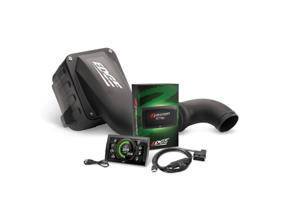 Performance has never been easier. Edge Products is pleased to offer you two standout products in one kit to optimize your diesel truck power, fuel efficiency, and overall driving experience. The new Stage 1 kits from Edge include a best-in-class Evolution programmer and Jammer cold air intake. We've bundled superior performance with tremendous value and savings. Review the product details and coverage below. Be sure to see just how much money you can save by purchasing a Stage 1 kit as opposed to buying these products individually. Power, savings, and reliability are available now for your driving pleasure. The Evolution reprograms your vehicle stock computer. It resides in the cab with one simple cable connection to the OBDII (diagnostic) port. The Evolution is used to save the stock files from the vehicle computer and then upload the Edge calibrations into the vehicle computer. This amazing product is available for both gas and diesel pickups and SUVs. This product comes with multiple power levels custom tuned by a whole team of engineers and can be installed in minutes without ever popping the hood. The Evolution greatly increases horsepower and torque. Not only does it re-tune your vehicle, it stays mounted in the cab and features real-time, monitoring of vital engine data for a complete gauge package. The Jammer Cold Air Intake design was engineered to move the intake box away from the engine heat to reduce warm air flow and catch the cooler outside air. Moving the air filter helps capture the outside cooler air that can be sucked into the engine for combustion. Cooler air brings more oxygen (denser air) into the combustion chamber and that means more power. When combining cooler more dense air to the engine you have more efficient combustion as well as add more fuel equaling more power.