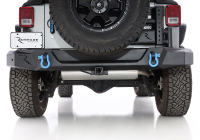 Quick view Rampage Rampage 07-18 Jeep Wrangler JK (Incl. Unlimited) Trailguard Rear Bumper - Black - 99619 Compare $759.99 The heavy duty rear bumper includes 2 in. receiver tow hitch made of 1/4 in. steel reinforced with 7/16 in. ring. The steel welded accessory panel allows for mounting a hi-lift jack or gas can. You can mount the tire in standard or slanted position,... Add to Cart Add to Cart