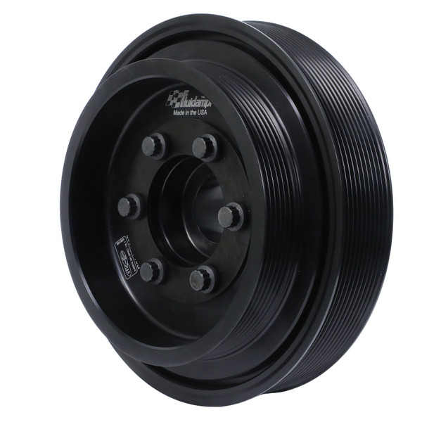 Protect your engine. Modifications can compromise your stock harmonic balancer. Install a Fluidampr performance damper early for best durability. Superior viscous damper design controls harmful torsional vibration across the entire rpm range. Reduce wear on engine components. Reduce risk of crankshaft failure. Improve timing. Unleash lost torque and horsepower. Precision CNC machined and balanced high-grade steel and Aluminum components. Corrosion resistant black anodized pulley and black zinc hub finish with engraved timing marks. No maintenance required. Trusted by leading engine builders worldwide. SFI 18.1 certified. Made in USA.