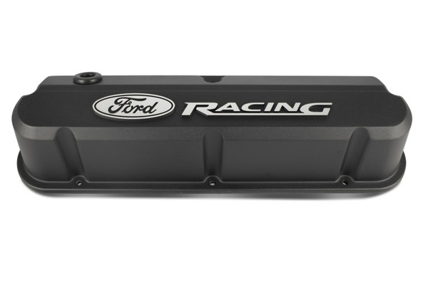These Proform Ford Racing Licensed slant edge valve covers are designed to fit directly on your engine with no modifications. They are manufactured from cast aluminum and are available in different finishes to customize the look of your engine bay. The valve covers feature a tall design, so they will clear roller rocker arms and polylock nuts. Proform Ford Racing Licensed slant edge valve covers have raised and milled emblems for a truly unique look and include baffles and grommets.
