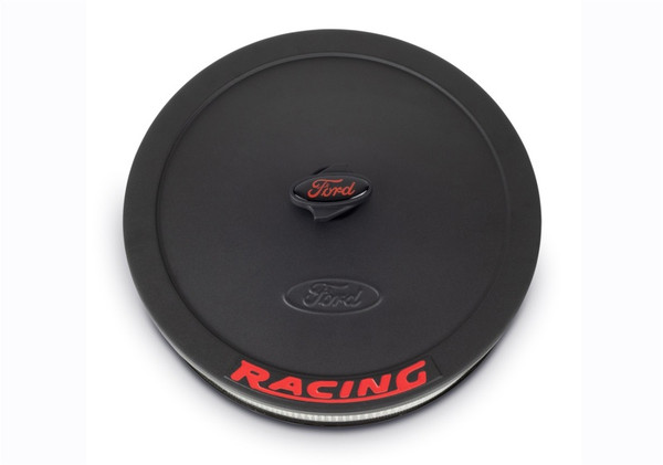 Add a Ford RACING, MUSTANG or COBRA Air Cleaner to your engine for that customized look. These 13 in. diameter air cleaners fit both 2 barrel and 4 barrel carburetors and include a high-performance filter element. Ford logo air cleaner center nut is also included.