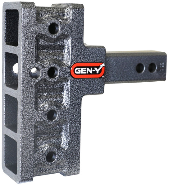 GEN-Y's Mega-Duty Adjustable Drop Hitches start at 10,000 LB towing capacity and go up to 32,000 LB towing capacity. There are multiple drop options as well depending on your trailer towing needs. Catalog Datasheet