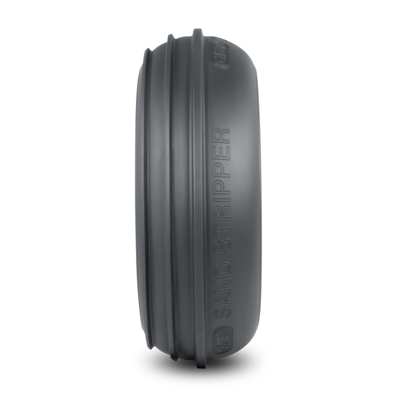 GMZ Race Products Sand Stripper and Sand Stripper TT Tires feature an extra wide footprint that provides maximum flotation and smooth dune transitions. Thick rim guard material keeps sand out of the bead while protecting wheel lip and the tough bias construction delivers long lasting durability. Front tires are available in the original Sand Stripper design with concaved tread ribs for responsive steering or the TT design that combines concaved tread ribs with a lateral traction block, maximizing the all-wheel drive power to climb steep hills faster. Rear tires are available in deep cut models designed for naturally aspirated machines, delivering extreme acceleration or staggered paddle models for smaller performance machines.
