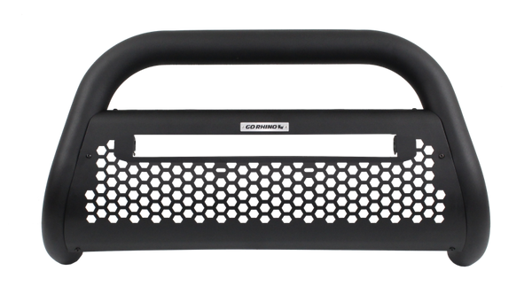 Go Rhino RC2 LR Bull Bars Light Ready offer updated styling and features that combine easy ways to add today's popular LED lights with front-end protection. Our textured black powder coat finish and Go Rhino hex pattern skid platte enhance vehicle styling with integrated openings and easy light