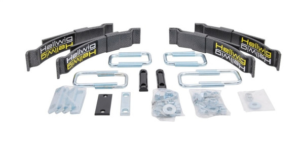 The Hellwig LP-15 helper spring line fits the Mid-size and Small pick-up groups. Manufactured with heat treated ASTM 5160 alloy spring steel in our California based facility, these units increase your vehicles level load carrying capacity up to the manufacturer?s Gross Vehicle Weight Rating. Featuring heavy duty components and easy to read installation instructions this helper spring line-up does a lot of work for its size. Simple bolt on design using common hand tools provide the installer ease of installation and the vehicle owner hassle free use. Packaged in one kit, this unit comes complete with plated and powder coated components, spring leaves, heavy duty hardware and installation instructions to make this unit easy to install and use. Fine tune your vehicle?s leaf spring suspension to suit your particular needs by adjusting the heavy duty U-bolts provided. If your tow and haul needs change, simply adjust the heavy duty U-bolts to suit the new requirement. Once installed and adjusted you are free to haul and/or tow a multitude of equipment and commodities with greater control and stability.