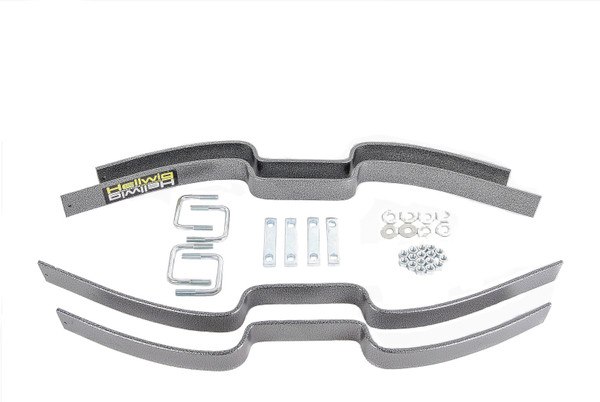 Add assistance to your factory overload springs with Hellwig's Contact Helper Springs. Get help sooner with the contact helper, as the vehicle is loaded the Hellwig contact helper spring connects with the factory contact pads sooner providing better support and less sag for heavy loads. When in contact, the extra Hellwig leaves stiffen the overload springs decreasing the sag of the vehicle in a loaded condition. Hellwig contact overload assist springs mount directly to the factory contact springs for easy install and better load support to increase the truck's level-load carrying capacity. In normal use, they leave performance unchanged.