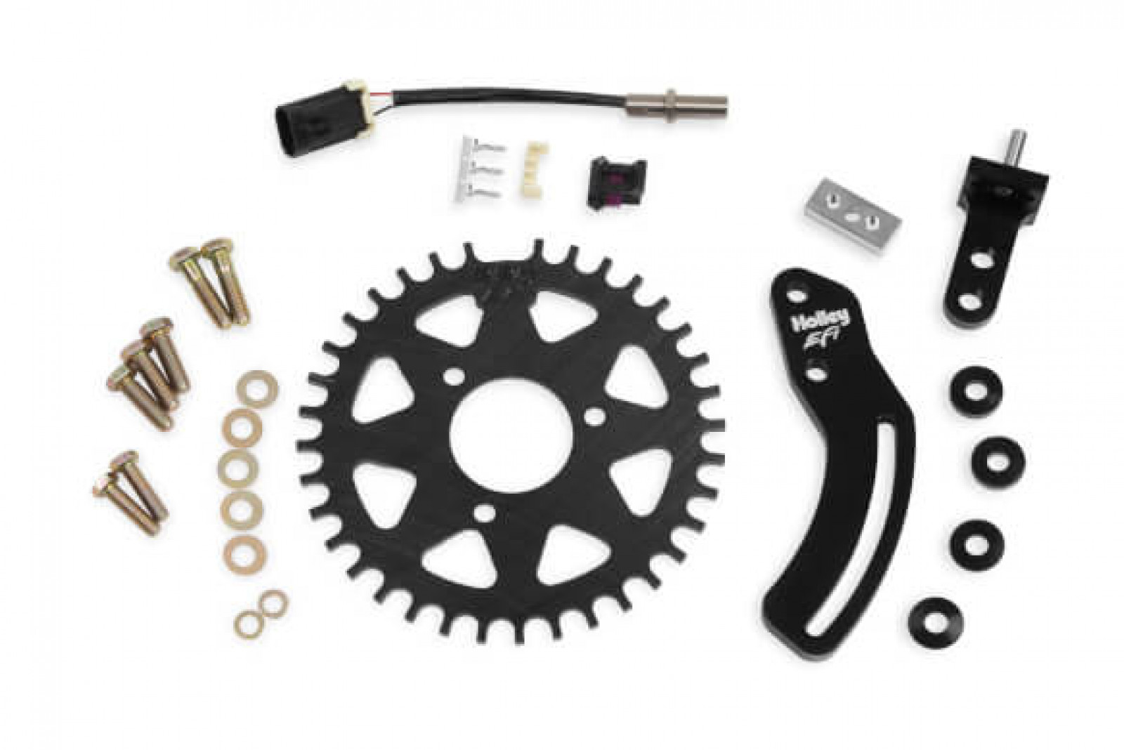 Holley's EFI Crank Trigger Kit is engineered to provide an accurate crank speed & position signal to Holley EFI systems in the most-demanding, high horsepower, racing applications. Crank position is measured every 10 degrees as opposed to every 45 degrees for a standard 4-Magnet, MSD "style" Crank trigger. It is designed for use on early model small block Chevy applications using a standard ATI or Fluidamper "style" balancer up to 7-1/4" in diameter.