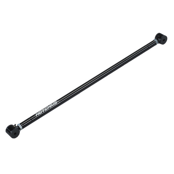 Hotchkis Sport Suspension 15102 2005-2014 Mustang Double Adjustable Panhard Rod. Install our heavy duty adjustable TIG-welded Panhard rod on a 2005-2014 Mustang and gain positive lateral axle control. Removes unwanted side to side axle movement caused by the flex in the stock stamped unit during extreme cornering. Easy to lubricate polyurethane bushings allow smooth travel without unwanted flex. Our Panhard rod also allows quick axle centering to optimize larger wheel/tire clearances. Finished in durable great looking gloss black powder coating. Benefits: Strong steel construction Left and right threads for easy to adjust lateral axle location. Large heavy duty threads and jamb nuts for positive and secure adjustment and locking Large durable easy to lubricate polyurethane bushings for smooth travel and vibration control Great looking durable gloss black powder coating Features: 1.125 in. od x.095 in. w. DOM steel tubing with 100% TIG-welded construction .875 threaded bushing ends Left and right hand threaded bushings ends with two piece durable polyurethane bushings on each end with .875-14 jamb nuts Grease fittings for each polyurethane bushing. Finished in gloss black powdercoat.