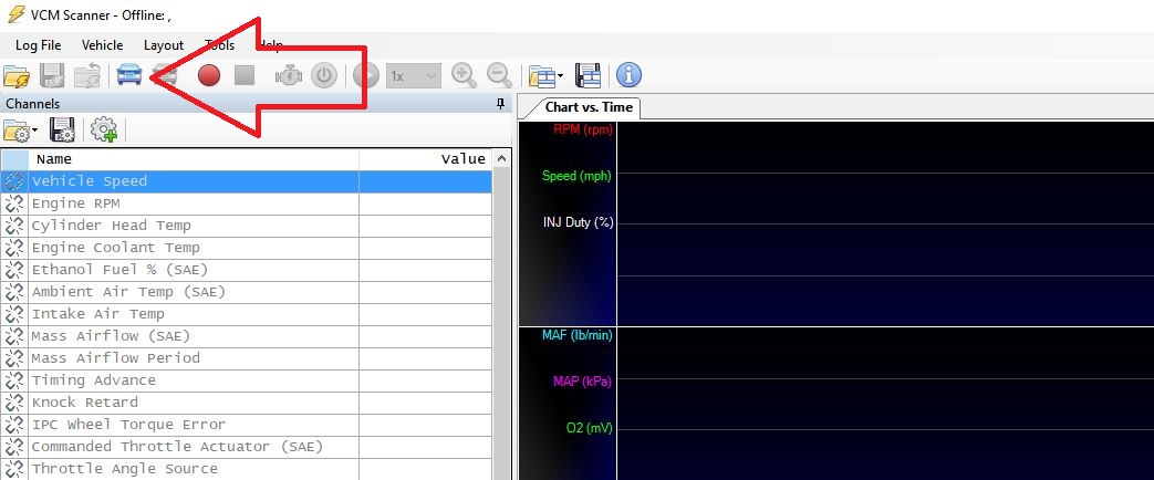 - Open VCM Scanner and make sure you are connected to the vehicle.